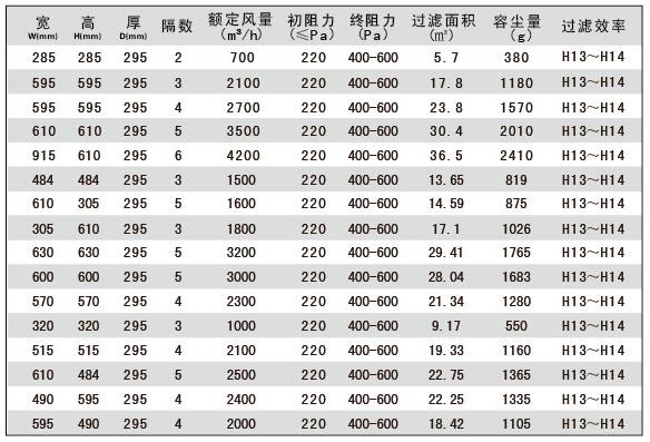 W型V型組合式高效過濾器規格尺寸參數: