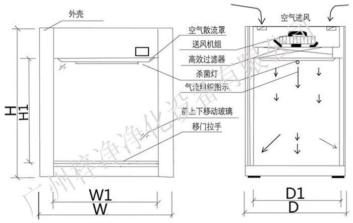 2、層流傳遞窗內外雙層殼體,內部四周圓弧處理,保證無縫隙連接;