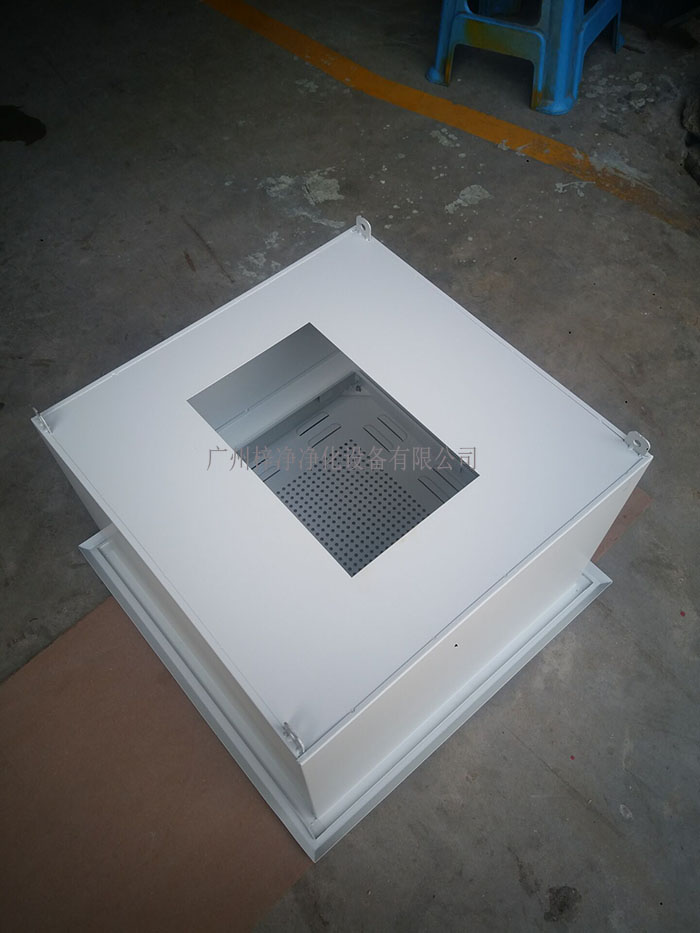 A、一體化高效送風口靜壓箱體,材質有冷軋鋼板(A3板)與不銹鋼板。箱體是用作吊在天花上與四周庫板相結合密封,也是高效送風口四件套主體。